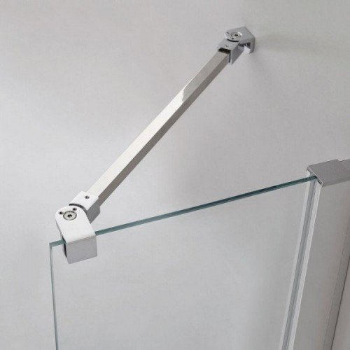 Mampara de ducha frontal con 1 hoja fija y 1 puerta abatible más lateral fijo, modelo Open Combi C Rec, es una mampara que lleva los fijos con brazos a 45 grados, y un abatible con el perfil provisto de un sistema de elevación al girar la hoja abatible, integrado en el perfil vertical, mediante el cual la puerta se eleva conforme la abrimos, mas un lateral fijo para cerrar platos de ducha rectangulares.
