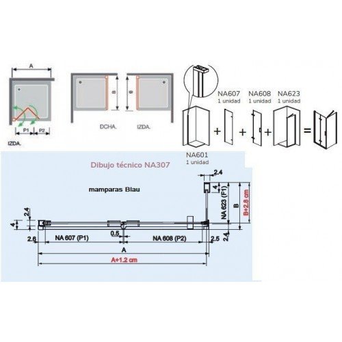 Tenemos varias combinación de medidas del frente, y 3 medidas para el el lateral fijo, que son las mas comunes en los platos de ducha.