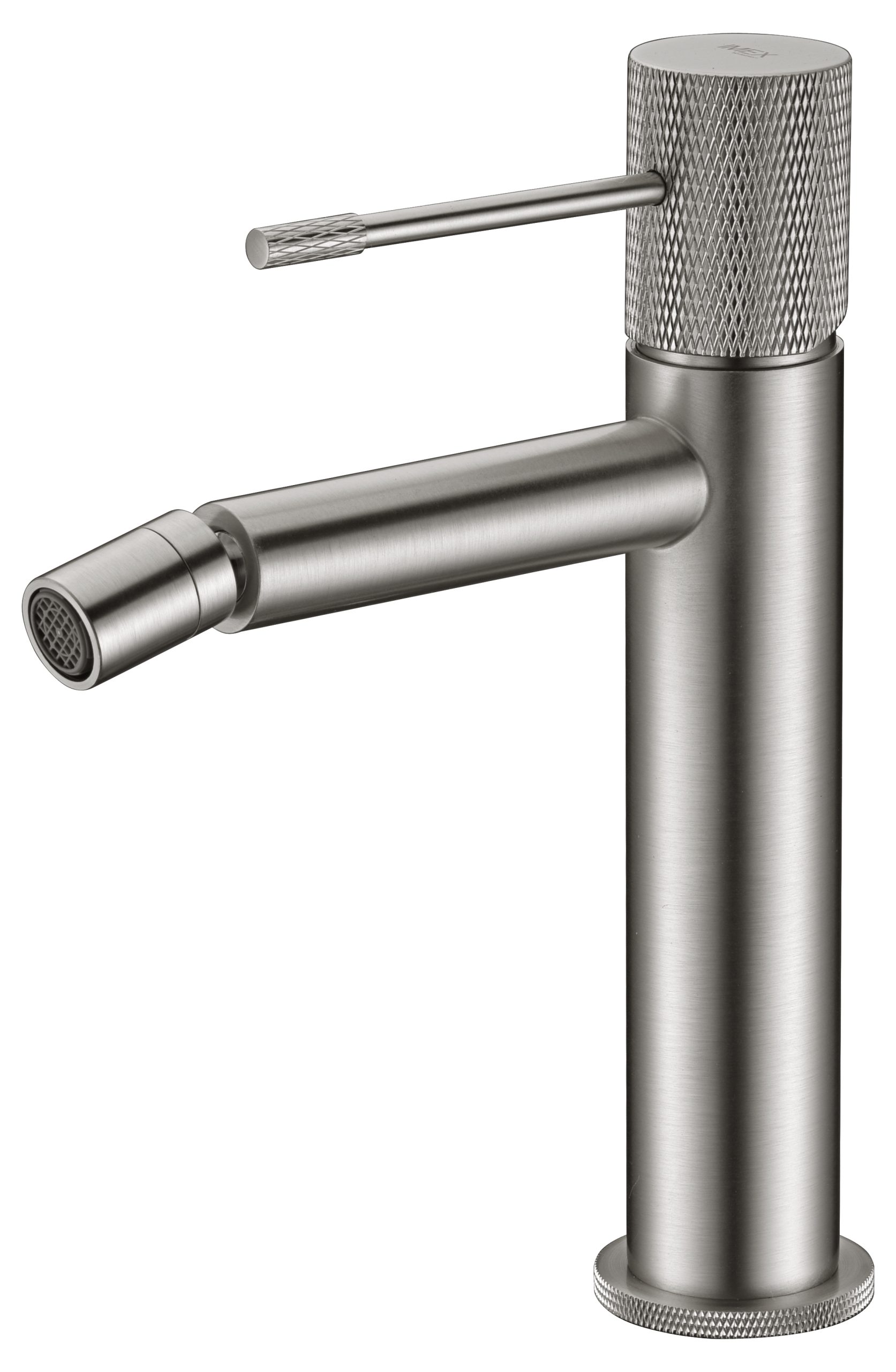 Grifo de bidé serie LINE, cuerpo de grifería hecho de latón, cartucho cerámico Ø26mm, incluye latiguillos 38″. Acabado níquel cepillado.
