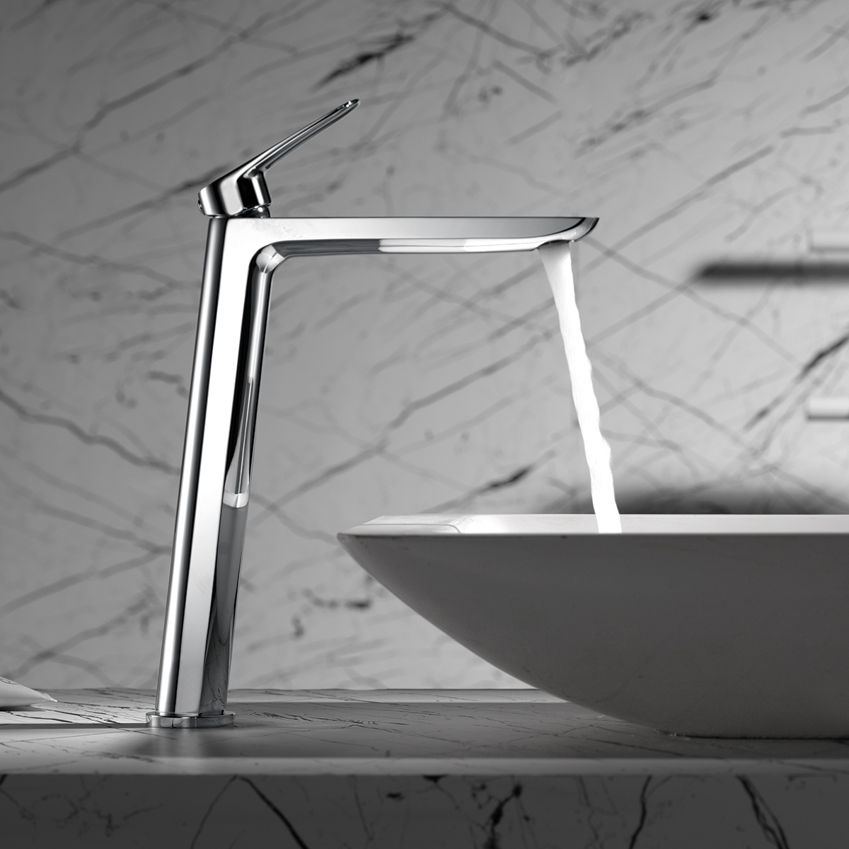 Monomando lavabo alto serie BELGICA en acabado cromado, cuerpo de grifería de latón cromado, cartucho cerámico Ø35mm, lavaboincluye latiguillos 3/8″