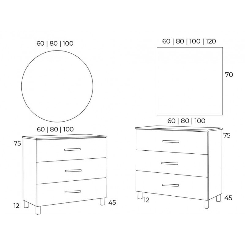 Medidas: 100x45x75 cm (ancho x fondo x alto).