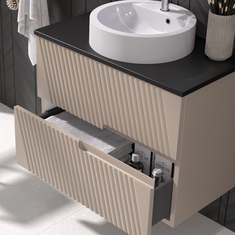 Lavabo integrado opcional de cerámica o resina no incluido con el mueble.