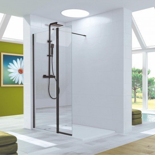 Mampara negra fija más puerta abatible Polaris 347,42€ - 376,96€Rango de precios: desde 347,42€ hasta 376,96€