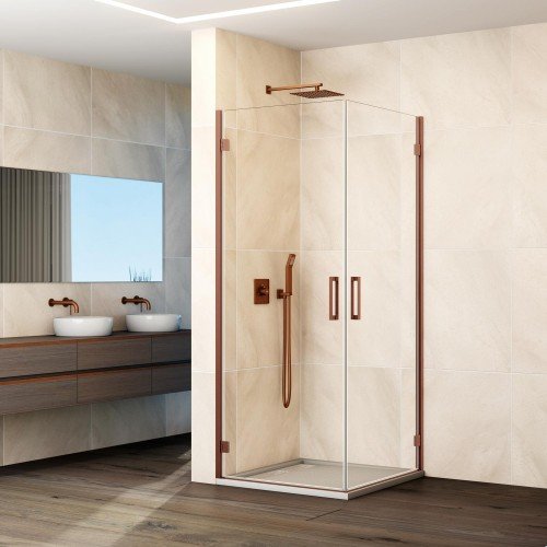 Mampara de ducha angular cobre 2 puertas abatibles bisagras Glass 451,80€ - 601,20€Rango de precios: desde 451,80€ hasta 601,20€