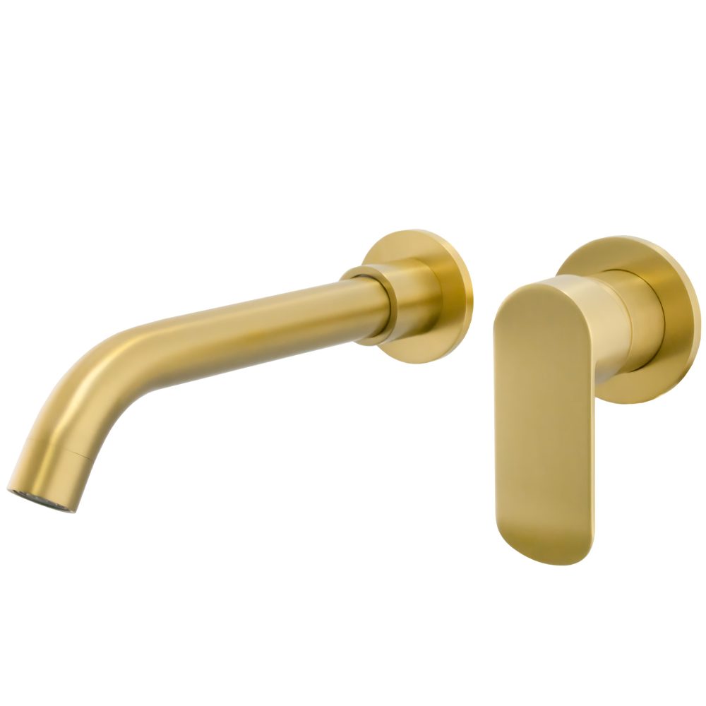 VALAZ Grifo lavabo empotrado redondo monomando oro mate con protección PVD con caño 21CM - Serie Tuejar