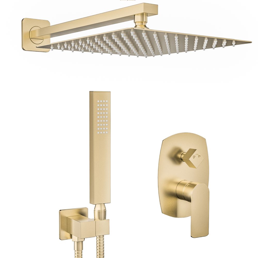 VALAZ Ducha empotrada monomando ovalada/cuadrada a pared oro mate con protección PVD - serie Esla - 30cm
