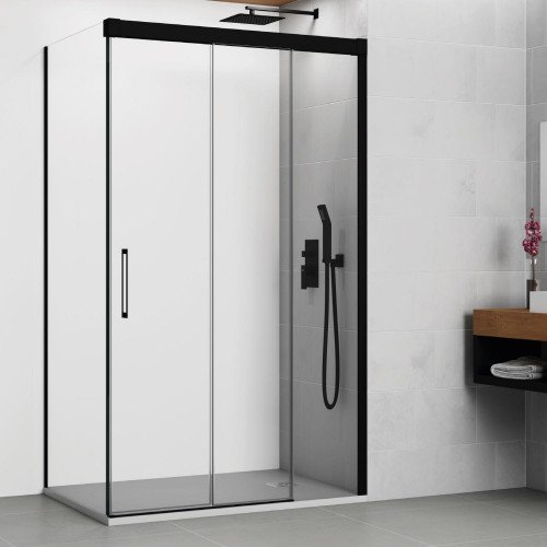 Mampara negra rectangular 1 fijo + 2 correderas más lateral fij 657,00€ - 703,80€Rango de precios: desde 657,00€ hasta 703,80€