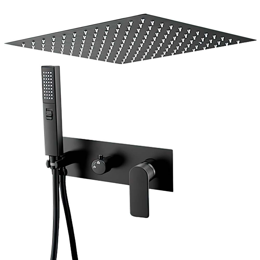 Ducha encastrada monomando a ras techo cuadrada negro mate serie Miño - 40cm