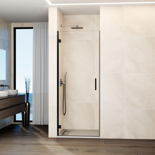 Mampara de ducha 1 puerta abatible bisagras titanio Glass 303,30€ - 392,40€Rango de precios: desde 303,30€ hasta 392,40€