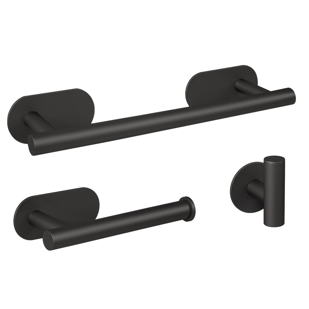 VALAZ Accesorios de baño adhesivos pegados sin taladro negro mate Toallero 30cm+ Percha+ Portarollos - 3Perch