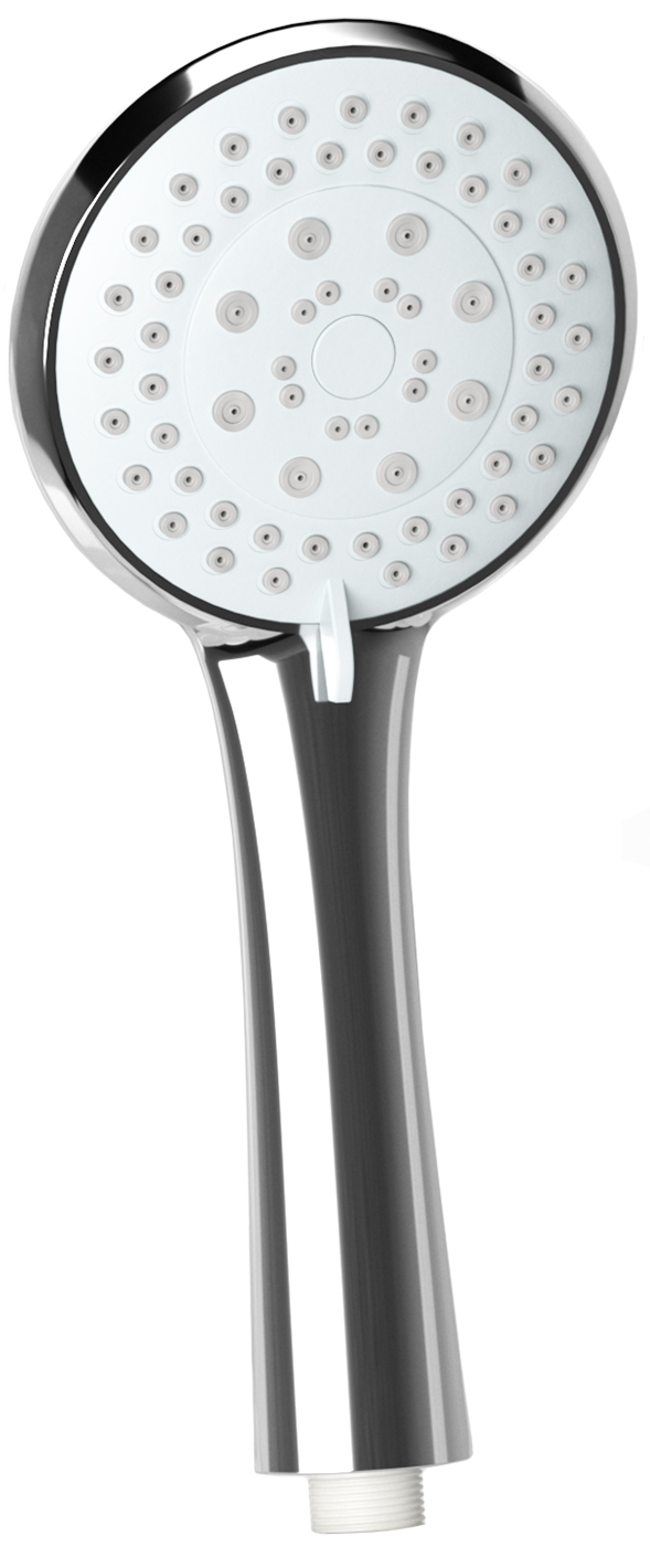 Alcachofa de mano redonda con acabado cromado, diseñada para un rociado amplio y uniforme, perfecta para baños modernos.
