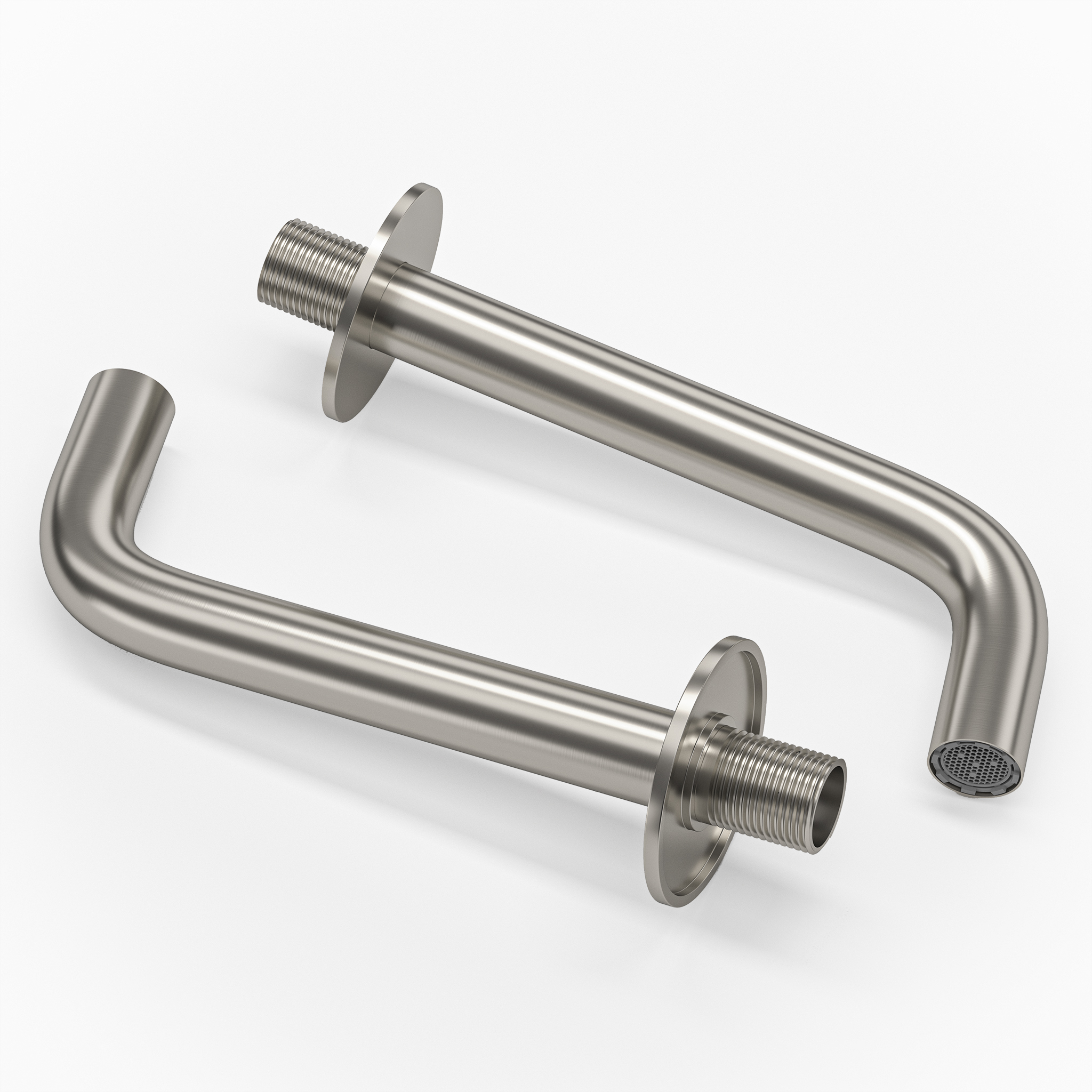 Caño de diseño minimalista con acabado en acero cepillado, ideal para baños y cocinas modernas.