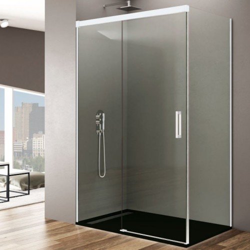 Mampara de ducha negra fijo más corredera sin perfil Moka 441,40€ - 616,33€Rango de precios: desde 441,40€ hasta 616,33€