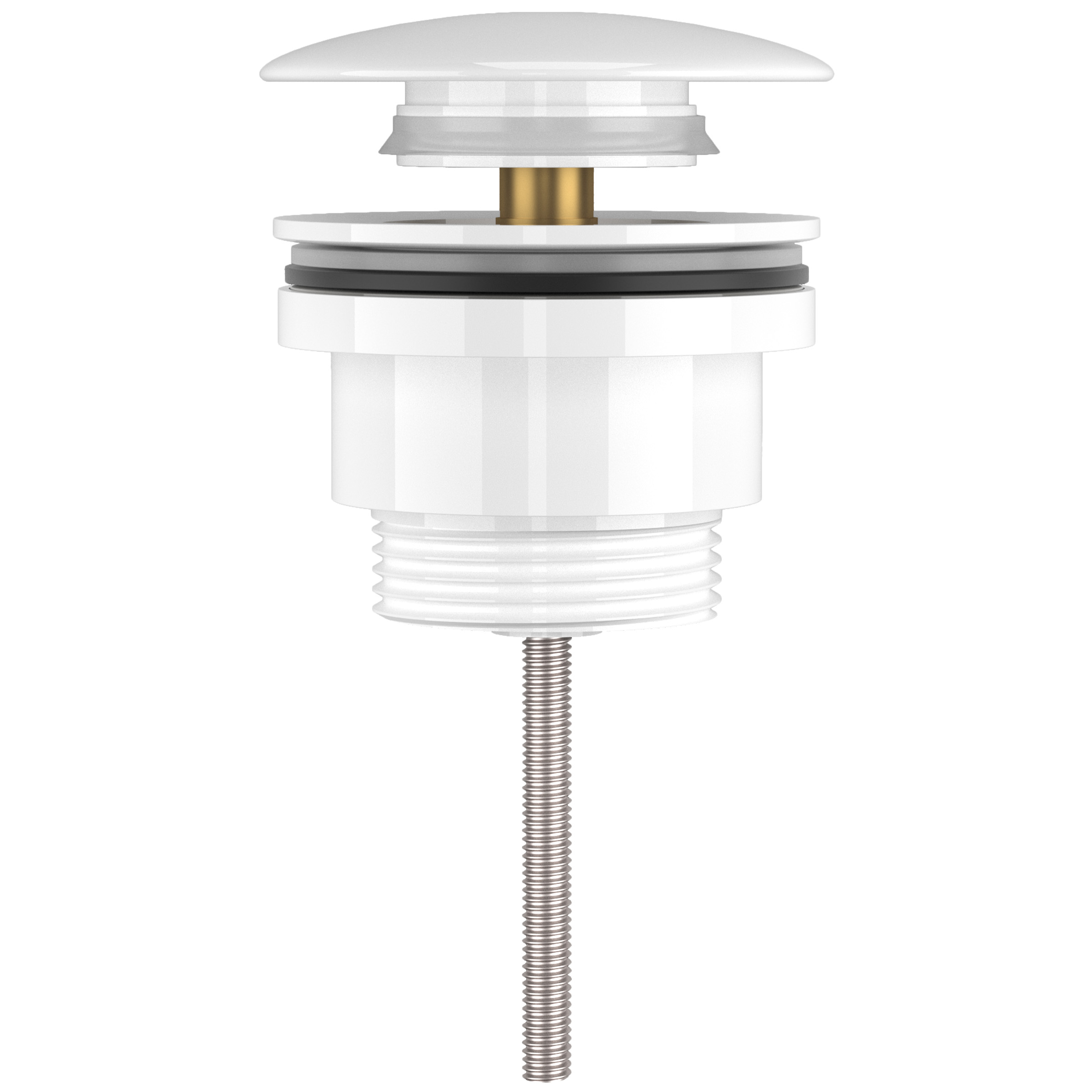 Válvula Click Clack para lavabo o bidé redonda en color blanco, diseñada para ofrecer una solución práctica y elegante para el cierre de tu lavabo o bidé. Su sistema de apertura y cierre con un simple clic asegura comodidad y funcionalidad, además de ser apta para modelos con o sin rebosadero.