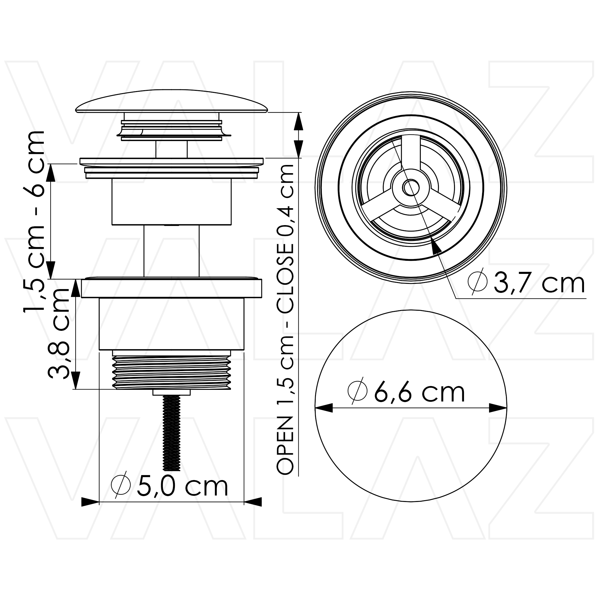 VALAZ Válvula click clack para lavabo o bidé redondo blanco